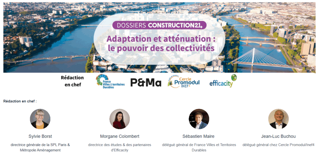 Construction21, en collaboration avec Sébastien Maire, délégué général de France Villes & territoires Durables, Sylvie Borst, directrice générale de Paris & Métropole Aménagement, Jean-Luc Buchou, délégué général de Cercle Promodul/inef4 et Morgane Colombert, Directrice des études & des partenaires d’Efficacity, ont lancé un appel à contributions pour son prochain dossier thématique « Adaptation et atténuation : le pouvoir des collectivités ».