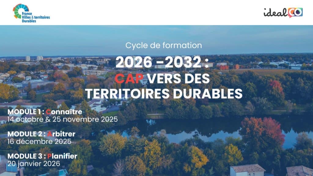 Face aux défis socio-environnementaux croissants, France Villes & territoires Durables et IdealCo lancent un cycle de formation inédit à destination des agents et cadres publics, pour penser et préparer le mandat municipal à venir avec réalisme et méthode.
