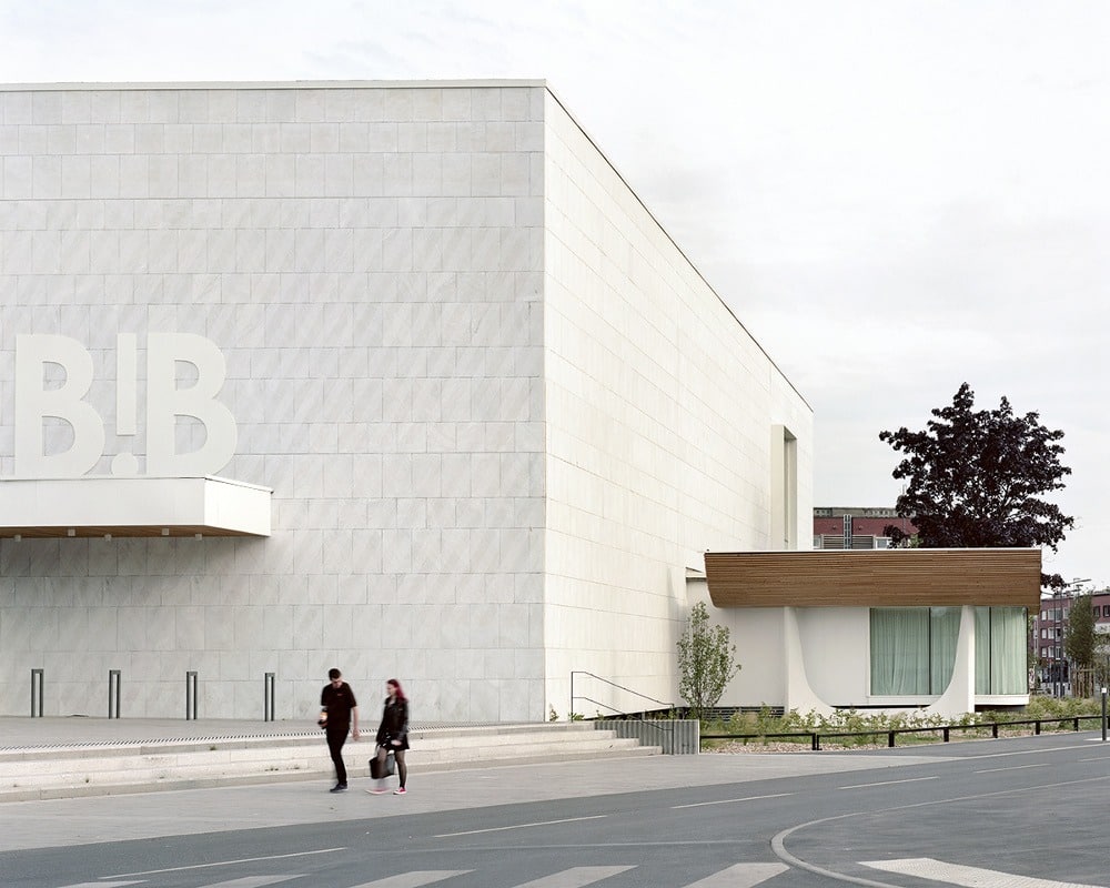 La B!B s’est installée dans l’ancien musée des Beaux-Arts. Ce bâtiment de style international (1973) a été profondément transformé par les architectes, à l’intérieur, mais aussi à l’extérieur, afin de mieux de se connecter à l’environnement urbain, lui aussi largement modifié. Autour du bâtiment on note : la destruction de bâtiments techniques annexes au musée, la création d’une résidence seniors, la création de deux parvis contribuant à la restauration d’une place publique, le réaménagement de la voirie, la restructuration complète du jardin public attenant à la bibliothèque. C’est donc un projet urbain à part entière.