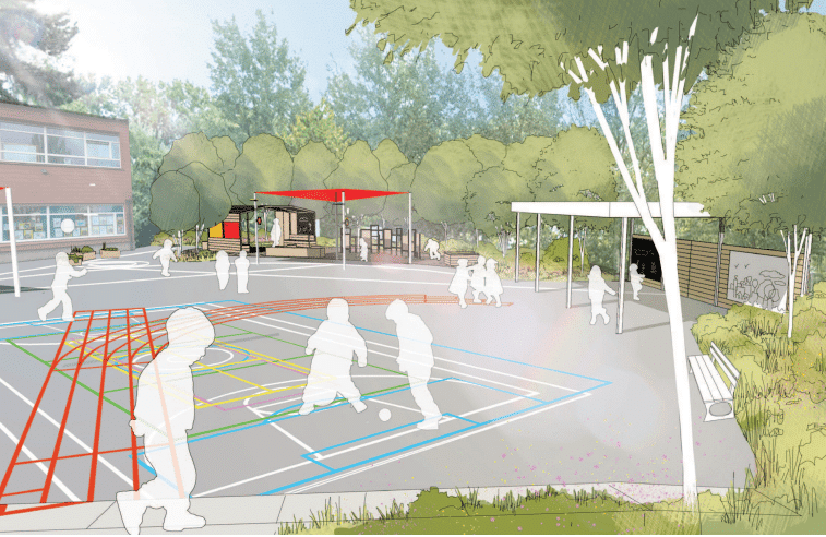 Aménagement d’une cour d’école résiliente, sobre, inclusive
