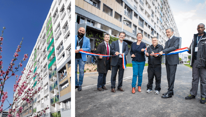 L’ambition était claire puisqu’il s’agissait de faire passer, l’ensemble des logements sociaux du quartier Gergovie, d’une étiquette énergétique de E (passoire thermique) à B (conforme au label européen DPE GHG),