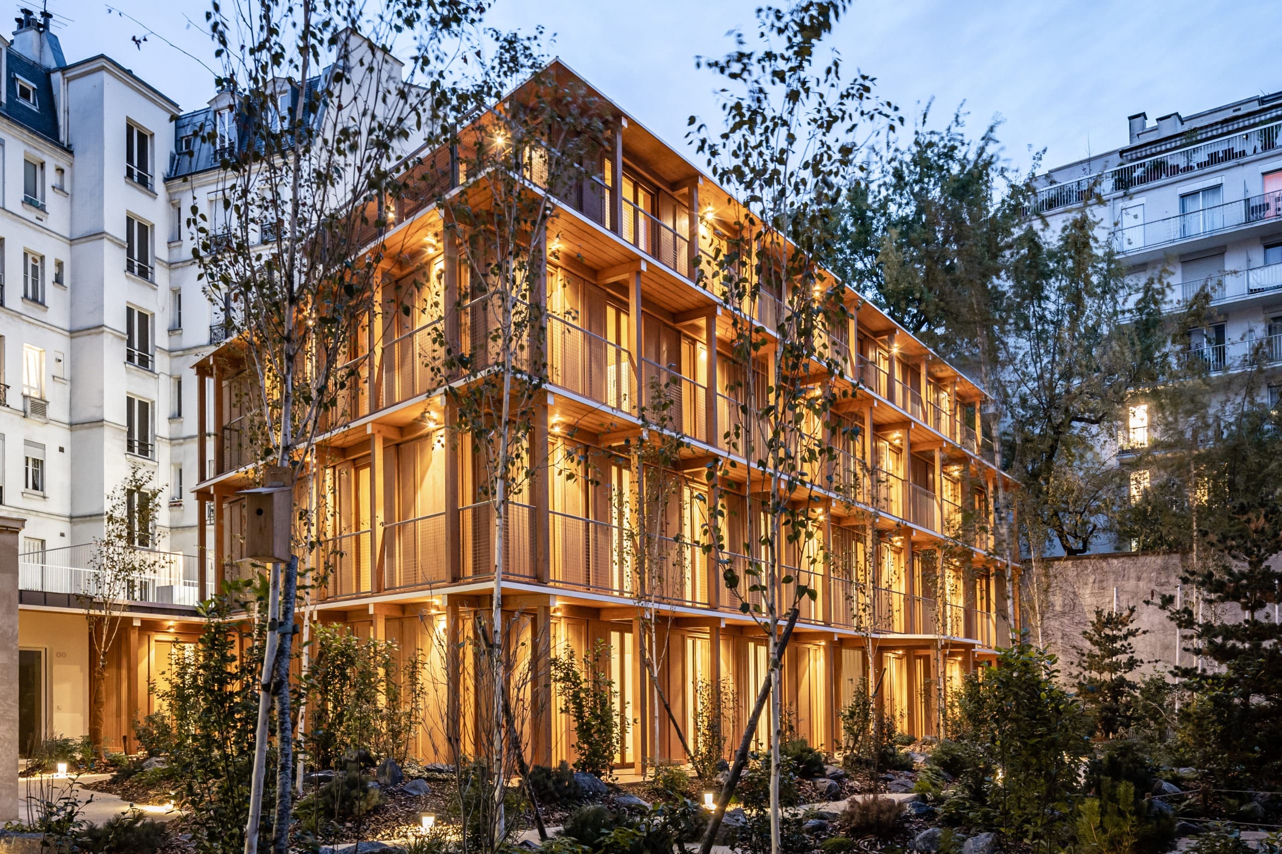Cette opération consiste en la construction de 13 logements en structure bois et un logement en rénovation dans une cour intérieure, au cœur d’une résidence à Paris 12ème.