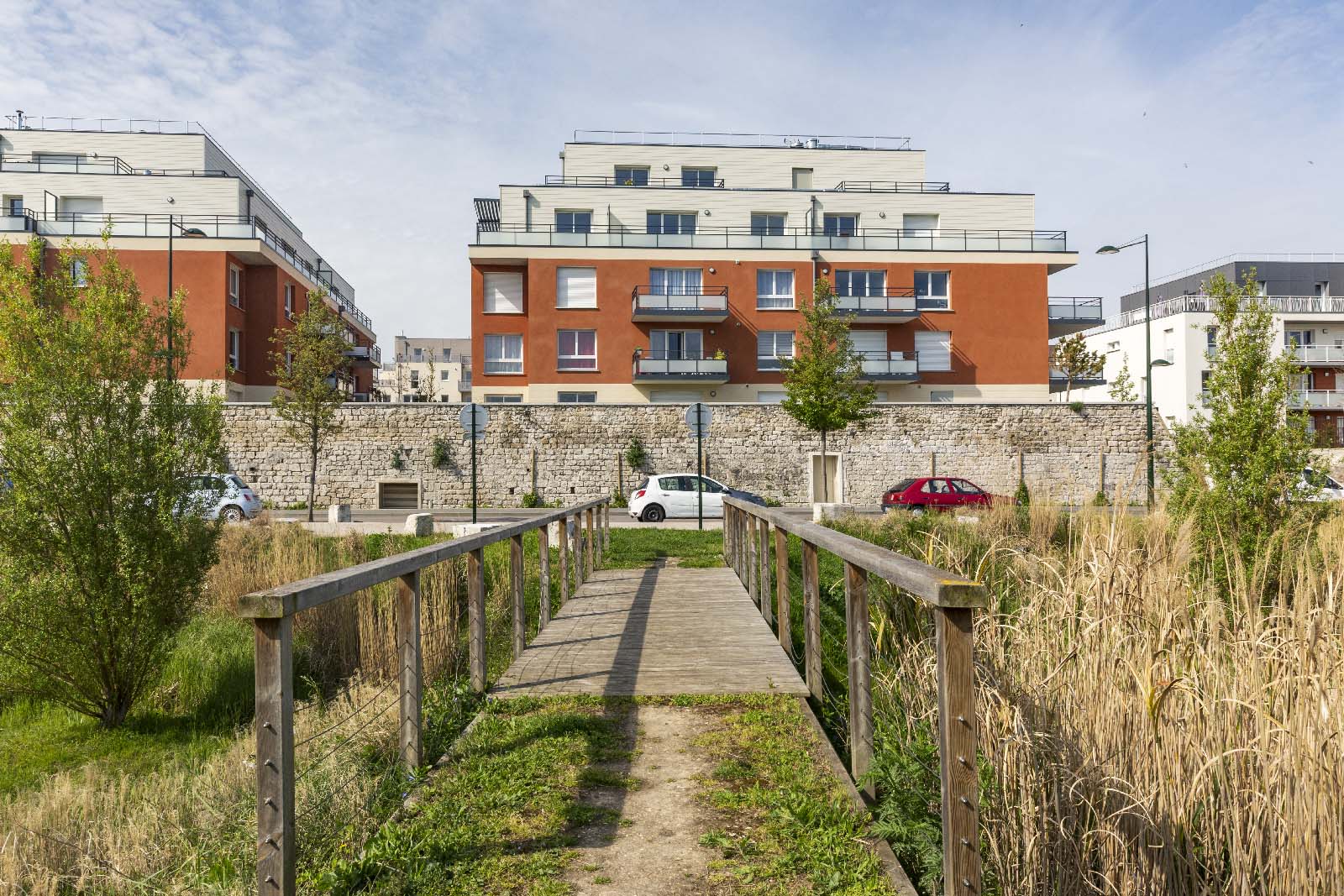 - des espaces publics qualitatifs reliés par des cheminements invitant à la promenade : remblais, jardins, parcs, espaces de jeux pour enfants, chemin vers les berges de la Seine ;