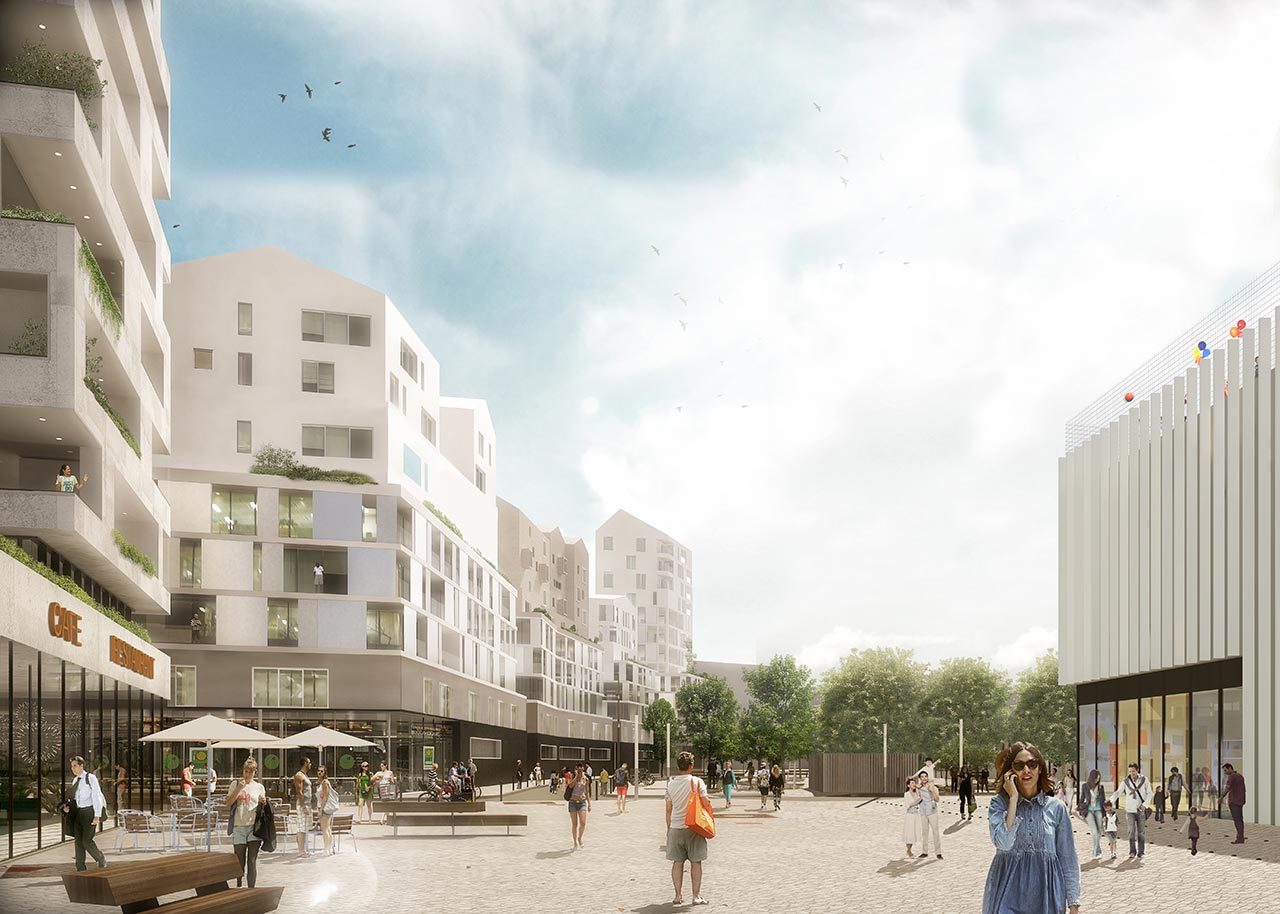 L’ensemble des aménagements paysagers participeront notamment à augmenter la valeur écologique du site, assez faible aujourd’hui, et à diversifier les habitats et espèces présentes. Quelques exemples de réalisations : un réseau de chaleur urbain, alimenté par des ressources géothermiques et l’incinération d’ordures ménagères afin de raccorder 100 % des besoins de chaleur du futur quartier par 60% a minima d’énergies renouvelables ; des bâtiments aux performances ambitieuses (RT2012-10%) ; choix d’un éclairage public économe et adapté aux besoins ; réduction des apports extérieurs de terre ; collecte des déchets par points d’apport volontaire ; gestion des eaux pluviales …